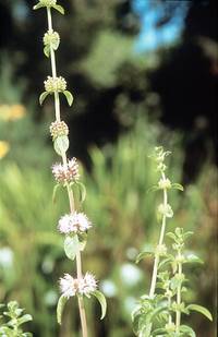 Poleiminze Mentha pulegiem L. “Wer die Blätter der Poleiminze mit Salz oft roh ißt, sie allein, nämlich als einzige mit Fleisch, dann wärmt sie ihm den Magen und Darm. Wenn sein Magen sogar voll Gift, das heißt Eiter, ist, reinigt sie diesen und heilt ihn.” Die Polei hat angenehme Wärme---und von folgenden Kräutern hat sie eine Kraft in sich: Zitwer, Gewürznelke, Galgant, Ingwer, Basilikum, Beinwell, Lungenwurz, Osterluzei, Schafgarbe, Eberraute, Engelsüß, Odermennig, Storchenschnabel, Bachminze.