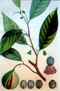 Muskatnuß Myristica fragrans “Wenn ein Mensch Muskatnuß ißt, öffnet es sein Herz und putzt sine Sinnesschärfe und trägt ihm etwas Geniales ein.” “Nimm Muskatnuß und einen gleichen Gewichtsanteil Zimtrinde und kleinere Menge Gewürznelken. Zu Pulver zerstossen. Aus diesem Pulver mach mit Feinmehl und ein wenig Wasser Plätzchen und esse sie oft. Das bringt alle Bitterkeit des Herzens und deiner Gesinnung zur Ruhe und öffnet dein Herz und deine Sinne und macht deine Stimme heiter.”